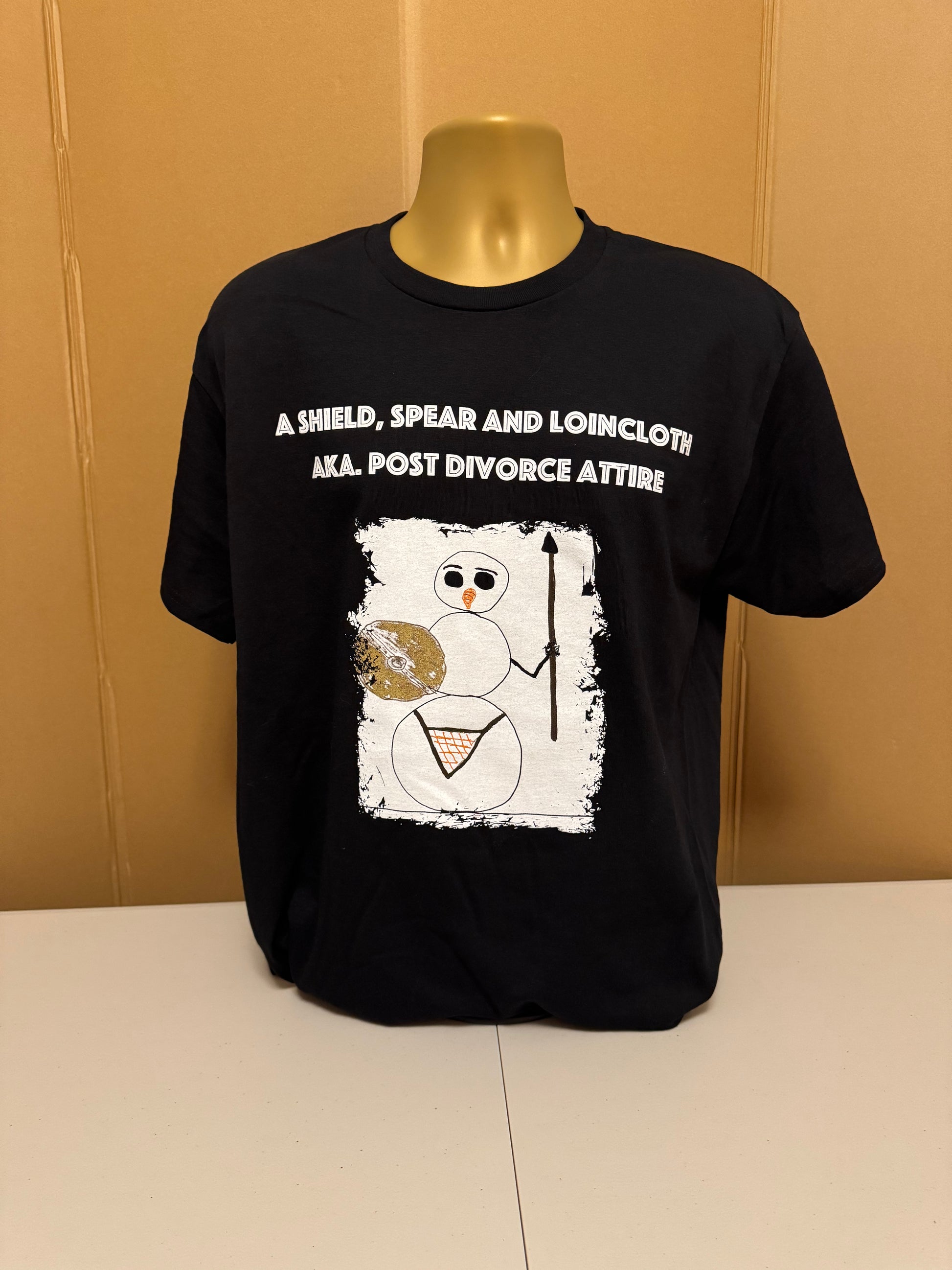 Collarless t-shirt with round neckline and cotton material. Suitable for comfort and casual wear. The text "Post Divorce Attire" with the Black T-Shirt pictured.